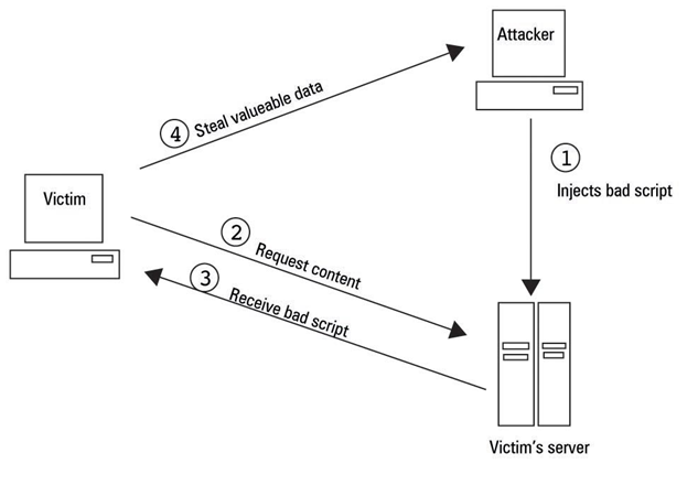 Stored XSS, image from https://hydrasky.com/network-security/crosssite-scriptingxss-attack/